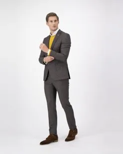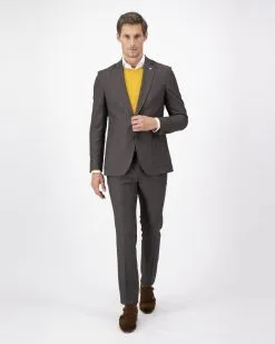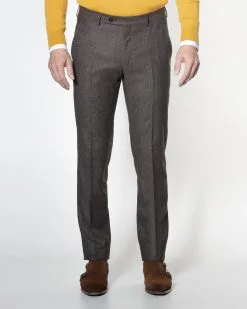 Bruine pantalon van Dutch Dandies in een fijne structuur geweven. De broek is gemaakt van een 75% wol en 25% zijde stof afkomstig van de Italiaanse stoffenleverancier ‘Zignone’….