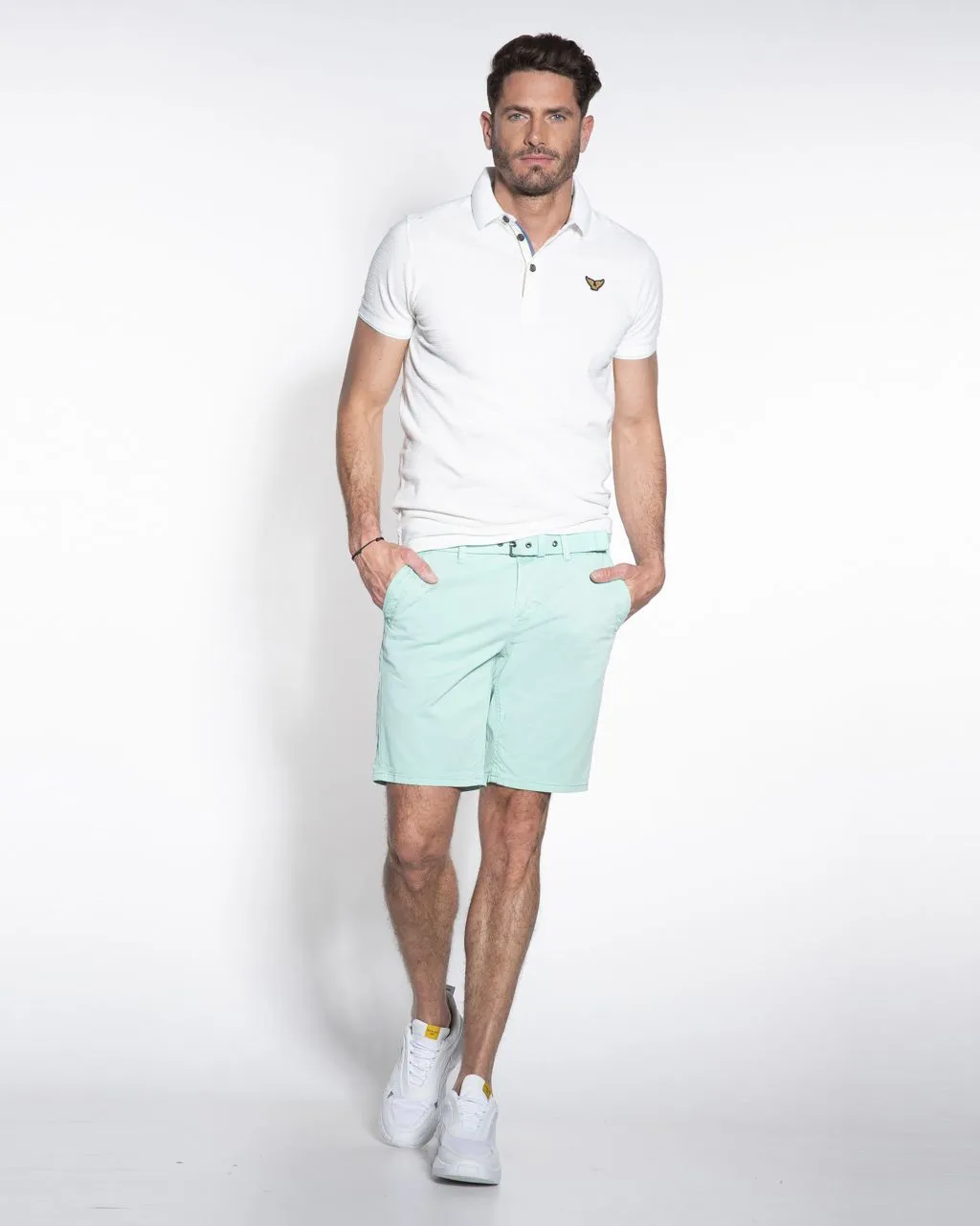 Mintkleurige bermuda van PME in 100% katoen. Deze stoere bermuda van PME heeft een slanke en comfortabele pasvorm en wordt met bijpassende canvas riem geleverd. Ideaal voor het …