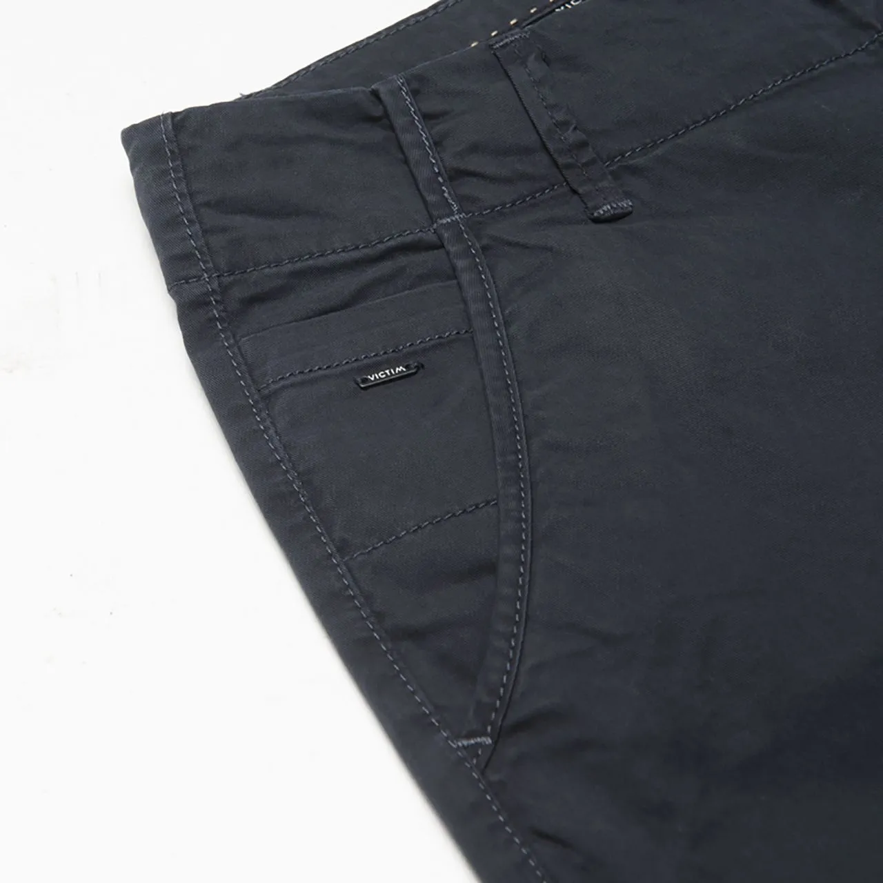 Een chino van Victim. Deze chino heeft een slim fit pasvorm en een ritssluiting. Daarnaast heeft deze short aan de voorkant twee steekzakken en een kleine zak. Aan de achterkan…
